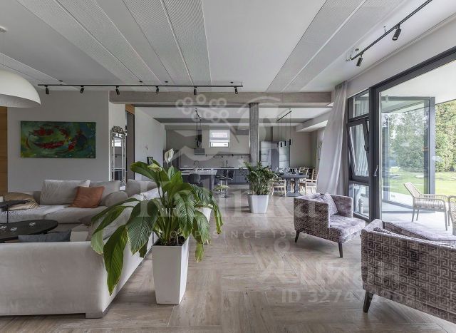 Особенности дома: ультрасовременная архитектура, панорамные окна (остекление занимает 50% площади фасада), по-настоящему лесной участок, высокие потолки (после отделки: 3,2-3,7 м) и межкомнатные двери (до 2,6 м в основных помещениях).