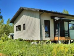 Дом построен по технологии ФАХВЕРК, т.е. каркас из клееного бруса с заводскими зарезками. Заполнение стен - СИП панель. Толщина утеплителя 174 мм. - в стенах, 224 мм. - в полу и потолке. Внутри дом отделан интерьерной фанерой, покрашены краской OSMO. На полу ламинат. Потолки натяжные. Хорошее освещение внутри и снаружи дома, декоративные подсветки. Множество розеток, в том числе уличные.