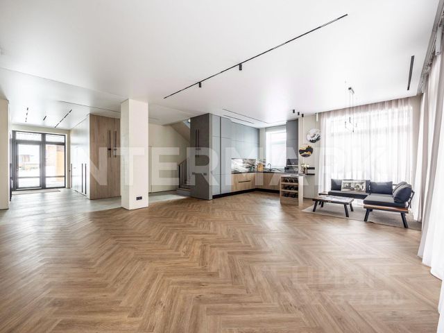 ID 8287. Павловы Озера. Новый, просторный двухэтажный дом впечатляет продуманным дизайном и премиальной отделкой. Строгие линии фасада, облицованного дизайнерским кирпичом из коллекции Тайга, создают солидный и в то же время лаконичный облик. Внутри — атмосфера комфорта и гармонии: панорамное остекление наполняет холл первого этажа естественным светом, визуально объединяя интерьер с окружающим пейзажем. В доме предусмотрены три мастерспальни с отдельными гардеробными и ванными комнатами, а также гостевая спальня рядом с зоной отдыха. Особого внимания заслуживает просторная кухнягостиная площадью более 50 кв.м, разделённая на три функциональные зоны: современную кухню со встроенной техникой, обеденную зону и гостиную с биокамином. Из гостиной открывается широкий выход на большую угловую террасу. Дом оснащён тройной системой микроклимата: вентиляцией с рекуперацией, мультисплитсистемой Haier и интегрированными конвекторами, а тёплые полы по всему дому дополняют эту продуманную систему. Стены из натуральной керамики поддерживают комфортный микроклимат в любую погоду. Среди изюминок интерьера — СПАзона с сауной, отделанной гималайской солью, купелью с хромотерапией и подогревом, а также открытой террасой для отдыха. На втором этаже расположен просторный балкон с выходом из двух комнат — его можно обустроить как оранжерею или лаунжзону. Для удобства владельцев предусмотрен навес на две машины. Участок площадью 11 соток продуман до мелочей: здесь установлены дренажная и ливневая системы, уложен газон оборудованный автополивом. Пространство располагает к отдыху и позволяет реализовать любые ландшафтные идеи — будь то зона для барбекю, сад или игровая площадка. Грамотно организованная инфраструктура участка делает повседневную жизнь комфортнее, а ухоженная территория создаёт ощущение уединённости и гармонии с природой. Коттеджный посёлок Павловы озёра расположен в 14 км от МКАД по Новорижскому шоссе — удачное сочетание близости к мегаполису и спокойной загородной атмосферы. Развитая инфраструктура посёлка обеспечивает всё необходимое для комфортной жизни: охраняемая территория гарантирует безопасность, а продуманная планировка — удобство передвижения. Окружение с живописными водоёмами и зелёными зонами позволяет наслаждаться природой, не отказываясь от преимуществ современной загородной жизни. Это место, где каждый день начинается с чистого воздуха и красивых видов, а высокий уровень комфорта становится естественной частью повседневности. Intermark Real Estate - участник ассоциации AREA