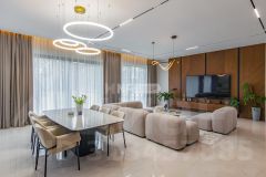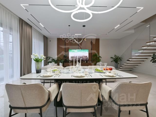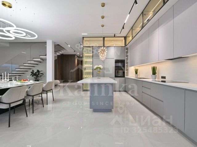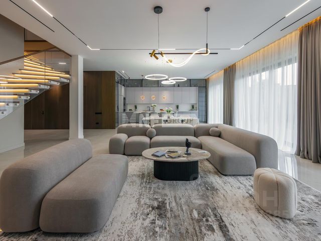 ID-5239 Роскошный загородный особняк площадью 815 м² с подогреваемым уличным бассейном расположен на живописном участке 14 соток. Дом оборудован всеми удобствами для комфортного проживания и отдыха всей семьи. Выполнен свежий дизайнерский ремонт с использованием материалов премиального уровня. Пол кухни выложен из высококачественного керамогранита, обеспечивающего долговечность и простоту ухода. Изящная лестница из натурального мрамора придаёт интерьеру элегантность и шарм. Продуманная планировка: Просторная кухня с выходом на террасу, оснащённая техникой Bosch, идеально подходит для приготовления изысканных блюд. Обширная столовая и уютная гостиная создают атмосферу домашнего тепла и гостеприимства. 6 просторных спален обеспечивают комфорт каждому жильцу, 5 современных санузлов, включая 1 ванную комнату с джакузи, позволяют наслаждаться удобством и приватностью. 4 вместительные гардеробные избавят вас от проблем хранения вещей. Отдохнуть душой и телом помогут сауна, хаммам, спортзал, кинотеатр и бильярдная комната. Подогреваемый уличный бассейн приглашает насладиться водными процедурами даже в прохладную погоду. Предусмотрен отдельный блок для персонала. Для удобства хранения транспорта предусмотрены 2 гаража: 60 м² в доме и отдельно стоящий 40 м², вмещают 4 автомобиля, есть зарядка для электрокаров. Гриль-зона предлагает дополнительное место для семейного досуга и развлечений на свежем воздухе. Участок обустроен системой автоматического полива, выполнен ландшафтный дизайн. Monteville — уникальный поселок от Villagio Estate, расположенный всего в 23 км от МКАД по Новорижскому шоссе. Это не просто место для жизни, это стиль жизни, где гармония с природой и комфорт идут рука об руку. Сердце поселка — прогулочная набережная вдоль реки Беляны. Здесь вы сможете насладиться живописными видами, прогуливаясь по лесным маршрутам или отдыхая на берегу. На территории посёлка расположены два парка с озерами и 6 детскими площадками, площадка для занятий уличной гимнастикой, а также 7 км лыжной трассы для любителей активного отдыха. Широкая инфраструктура поблизости включает магазины, рестораны и развлекательные заведения, что делает жизнь здесь удобной и насыщенной. Это предложение сочетает в себе современный дизайн, высокие технологии и комфорт, необходимый для постоянного проживания и отдыха за городом.
