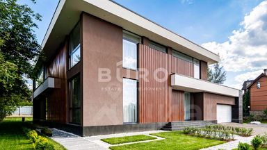 ID 8792 Новый дом в современном стиле в КП "Русская Деревня" Роскошный двухэтажный дом с 5 спальнями, общей площадью 540 м², представлен "под ключ" и расположен на видовом участке 19.5 соток. Планировка продумана для удобства большой семьи. Первый этаж: гардеробная, кухня-столовая-гостиная, спальня со своим санузлом, гостевой санузел, постирочная, кладовая, котельная, летняя терраса, гараж для 2-х автомобилей. Второй этаж: мастер-спальня со своими санузлом и гардеробной комнатой, 3 спальни со своими санузлами и гардеробными. Новый загородный дом возведен в современном стиле из высококачественных материалов с соответствии с высокими стандартами строительства в престижном, экологически чистом Истринском районе Подмосковья. Стильный интерьер укомплектован изысканной мебелью и элементами декора. На кухне предусмотрена функциональная кладовая. Панорамные окна, большая площадь остекления и высокие потолки создают ощущение простора, делая дом светлым и уютным. В санузлах установлена сантехника ведущих производителей. Центральные коммуникации обеспечивают городской комфорт круглый год: газ, вода, электричество и канализация. "Русская деревня" - коттеджный поселок бизнес-класса в окружении густого леса. Чистейших воздух богато насыщен кислородом. Живописное место для тихой и спокойной жизни на природе. На ухоженной территории посёлка есть озеро, которое зимой превращается в каток. К услугам жителей посёлка: продуктовый магазин "ВкусВилл", а также винный и цветочный магазины. Любители активного образа жизни оценят спортивную площадку. Для маленьких жителей обустроена современная детская площадка и работает частная школа "Лидер". В посёлке абсолютно безопасно благодаря круглосуточной охране, патрулированию и строгой пропускной системе. Все коттеджи подключены к охранной сигнализации. Поселок отличается удобной транспортной доступностью. Доехать до Москвы на машине получится за 25 минут по Новорижскому или Волоколамскому шоссе. Вы сможете оставаться в ритме трудовых и учебных будней. Жителям доступна инфраструктура Новой Риги, Павловской Слободы и Звенигорода, где есть всё необходимое. В 10 минутах езды от посёлка находится аутлет "Novaya Riga Outlet Village" с магазинами, ресторанами и фудмаркетом. В непосредственной близости работают: детские сады, учебные учреждения, супермаркеты, аптеки, ТЦ, салоны красоты, фитнес-клубы, медицинский центр и конно-спортивный комплекс.