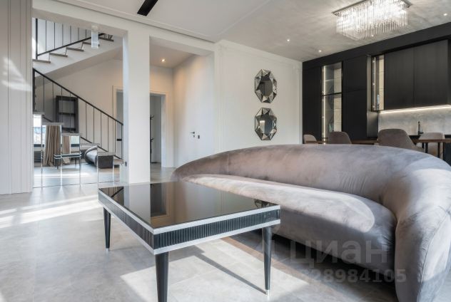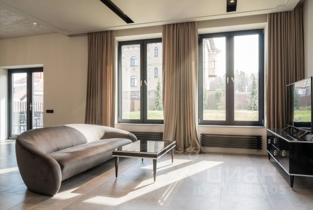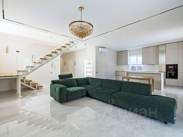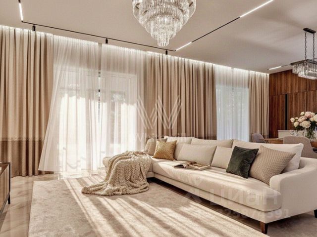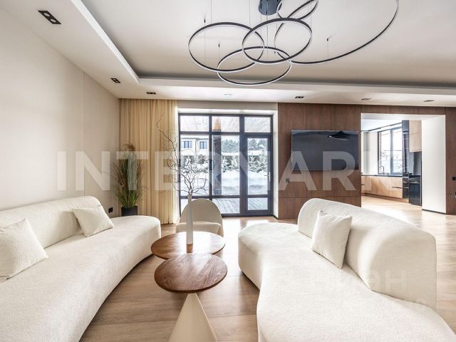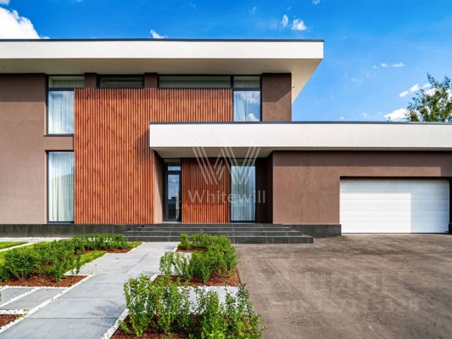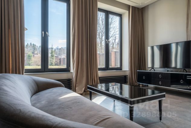 Лот: 9914782. ЭКСКЛЮЗИВ NF GROUP. Дом с мебелью 410 кв.м на участке 13 cот. Кол-во спален: 7. Кол-во с/у: 5. Поселок "Русская деревня". Новорижское шоссе, 25 км от МКАД. Без комиссии для покупателя. Просторный трёхуровневый дом площадью 410 м² расположен в коттеджном посёлке "Русская деревня" на Новорижском шоссе, всего в 25 км от МКАД. Участок площадью 13 соток находится в экологически чистом районе с живописной природой. Дом предлагается с чистовой отделкой, укомплектован новой функциональной мебелью ведущих производителей. Все центральные коммуникации заведены: газоснабжение, водоснабжение, канализация, электричество мощностью 15 кВт. На первом этаже расположены прихожая со встроенными шкафами, бойлерная, зона для стирки, две спальни и санузел. Центральное место занимает просторная кухня-гостиная с выходом в отапливаемый зимний сад, где оборудована рабочая кухня и установлено панорамное остекление. Основная кухня оснащена всей необходимой встроенной техникой. На этом же уровне находится гараж. Второй этаж отведён под приватную зону: мастер-спальня с гардеробной и санузлом, гостевая спальня с собственным санузлом, три детские спальни и отдельный санузел. На мансардном этаже площадью 35 м² оборудован кабинет. На участке предусмотрена возможность строительства дополнительного строения (бани) — коммуникации к месту подключения уже подведены. Коттеджный поселок "Русская деревня" на Новой Риге - несомненно замечательное предложение для тех, кто мечтает приобрести загородный дом на небольшом удалении от Москвы. Поселок "Русская деревня" расположен в экологически чистом районе с нетронутой красотой подмосковной природы и всего в 22-х километрах от МКАД. На территории есть большая детская площадка, прогулочная зона и магазин. Благодаря развитой инфраструктуре, удобной транспортной доступности, выгодной ценовой политике и благополучной экологической обстановке, коттеджи на Новой Риге пользуются большой популярностью.