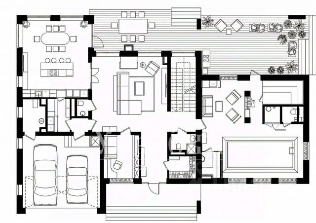 Цокольный этаж: винная комната, бильярдная, санузел, тренажерный зал, котельная, серверная;