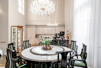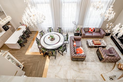 В отделке использовано натуральное дерево, установлены итальянские межкомнатные двери, сантехника Villeroy & Boch, паркет и керамогранит в теплых оттенках. Стены окрашены качественной моющейся краской.