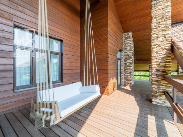 В банном комплексе: русская печь с изразцами, на террасе - горячая встроенная фурако и холодная купель, столовая-гостиная, 12-футовый бильярд, гостевая спальня и шикарная парная комната с панорамным окном и живописным видом на участок.