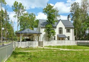 Арт. 113586414 Представляем вашему вниманию стильный загородный дом 10 с большой террасой, площадью 248м2, построенный по авторскому проекту известного архитектора на лесном участке размером 10 соток, расположенном в камерном коттеджном поселке Турово парк, в 25 км от Москвы по Волоколамскому шоссе. Дом сочетает элегантность традиционного стиля и высокое качество строительных материалов. Стены возведены из кирпича, цоколь, терраса, крыльцо, дорожки выполнены из травертина, крыша- фальцевая кровля, все двери и стеклопакеты в доме- из натурального дерева. Участок расположен среди живописной рощи, гармонично интегрирован в природный ландшафт. Экологичная застройка сохраняет красоту окружающей природы. Особенностью этого участка является возможность увеличения его площади до 20 соток. Планировка Первый этаж: прихожая, гардеробная, кухня-столовая, гостиная, спальня с с/у, с/у, бойлерная. Второй этаж: мастер-спальня с гардеробной с/у, 2 спальни, с/у, постирочная. Камерный коттеджный поселок "Турово парк" расположен всего в 25 километрах от столицы по Волоколамскому или Новорижскому шоссе. Всего 40 минут - и Вы оказываетесь в уютном поселке, окруженном великолепным лесным массивом. На территории 8 Га расположено 30 домовладений, площадью от 216 до 264 кв.м, с придомовыми участками от 9 до 13 соток. Архитектурный облик поселка представлен единым вневременным классическим стилем, разработанным архитектором с мировым именем - Тимуром Каримовым. Одним из важных принципов работы этого выдающегося архитектора - ни один дом, спроектированный им, не строится повторно, именно поэтому каждый дом в поселке "Турово парк" неповторим и уникален. Оказываясь в поселке, Вы словно попадаете в европейский пригород с его классической архитектурой, уютными улочками и обилием зелени. Бережно сохраненный лесной массив, в сердце которого выстроен коттеджный поселок "Турово", дарит ощущение глубокого погружения в природу и тишину. Однако, у всех коттеджей есть и нечто общее — каждый из них построен из высококачественных и экологичных материалов. Стены домов выполнены из керамических блоков с утеплителем, во внешней отделке использован кирпич, фундаментом служит ростверк с песчаной подушкой и монолитной плитой, низ периметра дома облицован травертином. Перекрытия и лестничные пролеты в доме выполнены из долговечного монолита. Внутреннее пространство каждого коттеджа продумано до мелочей и максимально функционально. Высота потолков варьируется от 3 метров на первом этаже до 3.5 метров на втором, что буквально наполняет дома воздухом и светом. На первом этаже расположены кухня-гостиная-столовая с камином и выходом на террасу, где можно уютно отдохнуть всей семьей и с друзьями, для гостей предусмотрена отдельная спальня, которую можно использовать в качестве кабинета или комнаты для персонала. На втором этаже расположены спальные комнаты. В зависимости от выбранного проекта к дому прилагается навес на 2 автомобиля. Отдельно стоит отметить великолепный природный ландшафт, бережно сохраненный застройщиком при строительстве "Турово парк". На каждом участке расположены многолетние ветвистые дубы, среди которых так приятно найти островок прохлады в жаркий летний день. Дубовая роща, окружающая поселок, создает ощущение тишины и покоя, так необходимое в быстром ритме сов