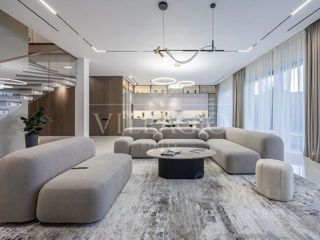 В доме: 5 спален, 7 с/у, парадная и техническая кухни, шикарная гостиная с панорамными окнами и эксклюзивным стеклянным камином, СПА-зона с сауной и купелью, уличный подогреваемый бассейн 4,8*2 м для круглогодичного использования, кабинет, домашний кинотеатр, патио для барбекю с дровяной печью и зоной для мангала и казана, гараж на 3 м/м с двумя автономными воротными секциями, 2х-комнатная квартира для персонала.