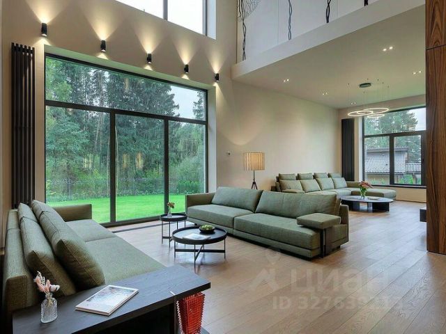 Особенности дома: интересная планировка, высокие потолки (3,3 м - на 1 этаже, 5,5 м - на втором), лесной участок - утопает в зелени, живописный вид из панорамных окон на вековые сосны, рябины, дубы.