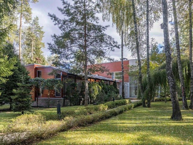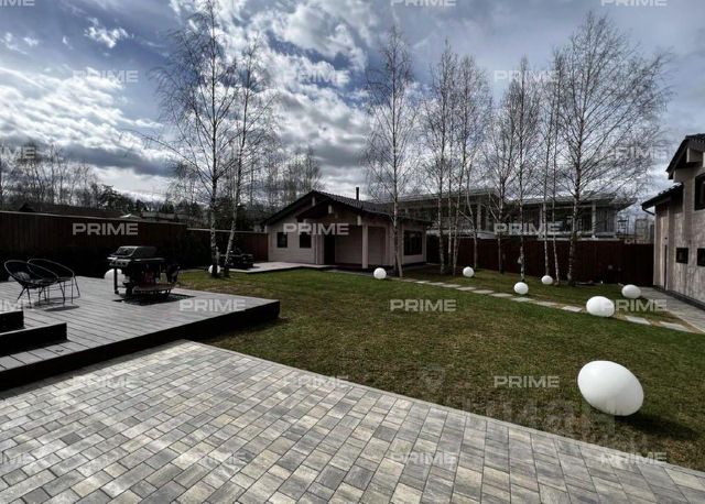 На участке газон, бонсай, туи, деревья, голубые ели, можжевельник. Установлен автоматический полив. Забор по периметру участка. Ворота с электроприводом, откатные.