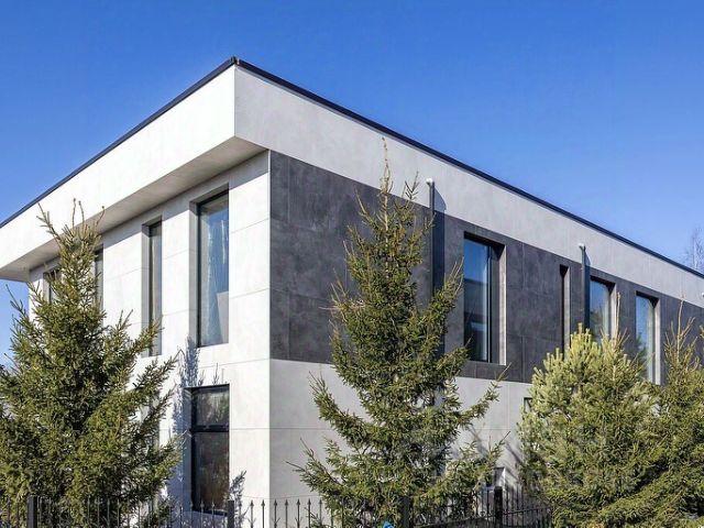 Фасад дома отделан натуральным камнем с клинкерной плиткой. Цоколь фасада - гранит. Отмостка дома монолитная, сверху выполнен гранит. Система видеонаблюдения по периметру дома. Архитектурное освещение дома.