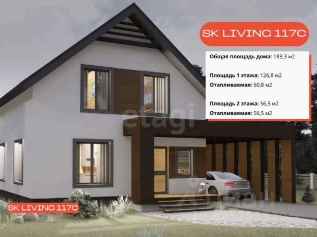 Жилой дом площадью 155 м² расположен на участке 6,1 соток, полностью огорожен забором с индивидуальным въездом и входом. Асфальтированный подъезд к дому. Дом уютный и теплый, построен из экологически чистого пеноблока с высокой тепло- и шумоизоляцией, а также огне- и морозостойкий. Фундамент — монолитная плита, крыша выполнена из ондулина, снаружи обшита сайдингом, внутри — имитация бруса.