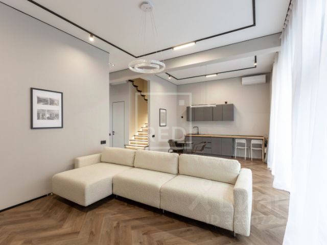 Кухня-гостиная (71) с выходом на балкон, холл (19,8).