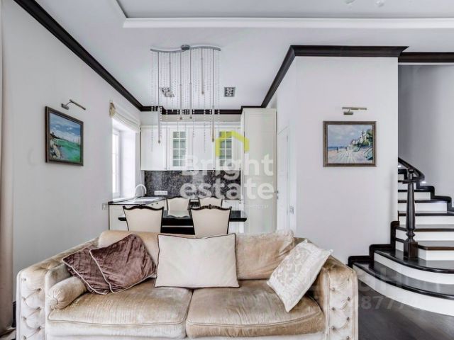 Номер лота: 1988040 На продажу предлагается элегантный таунхаус площадью 240 м² на уютном участке 2 сотки в коттеджном поселке "Павлово-2", всего в 14 км от Москвы по Новорижскому шоссе. Таунхаус полностью готов к заселению, с дизайнерской отделкой из натуральных материалов и стильной мебелью. Просторная гостиная, совмещенная с кухней и столовой, впечатляет высокими потолками и большими окнами, наполняющими пространство естественным светом. Интерьер выполнен в светлых тонах, создавая ощущение легкости и простора. Каждая деталь этого дома продумана до мелочей: от современной кухни с высококачественной техникой до уютных спален, где приятно отдохнуть после насыщенного дня. Санузлы оборудованы премиальной сантехникой, обеспечивая максимальный комфорт. Планировка: 1 этаж: кухня-столовая, гостевой санузел, построчная, гостиная, выход на террасу. 2 этаж: мастер спальня с гардеробной и с/у, кабинет-гостевая, детская спальня, с/у. 3 этаж: спальня с гардеробной и с/у. Охраняемая территория с КПП гарантирует вашу безопасность и спокойствие. Для жителей предусмотрены магазины, спортивные и детские площадки, а также зоны для отдыха и прогулок. Этот таунхаус — идеальный выбор для тех, кто стремится к высокому уровню жизни в окружении природы, не жертвуя при этом комфортом и удобствами. Звоните и записывайтесь на просмотр!