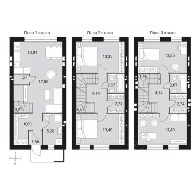 На третьем этаже: детская студия (спальня + игровая), санузел и техническое помещение.