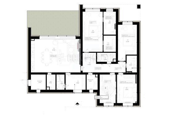 Дом вдали от оживлённой трассы. В 5-ти минутах пешком сосновый лес. Эксплуатируемая кровля ок. 130 кв.м, балкон 40 кв.м, отдельный вход на цокольный этаж ок. 30 кв.м, 3 с/у. Все коммуникации заведены в дом, Газ магистральный централизованный, котельная готова, пуск газа выполнен. В доме выполнена разводка отопления, водяные тёплые полы, электропроводка, на полу бетонная стяжка. Электричество 15кВт, канализация септик Топас, водопровод скважина. Во всём доме большие панорамные пластиковые окна цвета под дерево, в гостиной и спальне панорамные окна в пол из алюминиевого профиля, установлен качественный дорогой дымоход Шидель под камин. На первом этаже кухня с гостиной, 3 комнаты, кладовая, с/у и большая комната 40 кв.м., которая планировалась использоваться в качестве бильярдной, места хватает для самого большого русского стола, вы можете использовать её по своему усмотрению. На втором этаже 2 с/у, большая светлая комната с 5-тью большими окнами, в которой планировался зимний сад. 4 комнаты, одна из них большая спальня с собственным выходом в с/у и выходом на балкон, также в спальне большое панорамное окно из алюминиевого профиля.