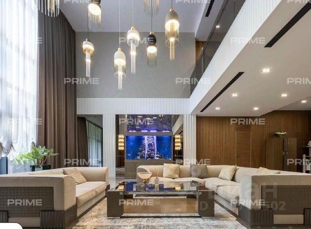 ЛОТ 1121225 Кэшбек 1000000 руб. на любые цели, например, на компенсацию поселковых платежей, в подарок от нашего Агентства при покупке через нас! Стильный новый дом в Millennium Park — современная архитектура, продуманные интерьеры и полный комплект мебели и техники! Просторный коттедж площадью 520 м² расположен на ухоженном участке 11,5 соток. Минималистичная архитектура с чёткими линиями, камнем и древесными текстурами подчеркивает статус, а панорамные окна и декоративная подсветка создают выразительный образ. В доме установлены системы умный дом, вентиляция, кондиционирование и тёплые полы. Интерьеры выполнены в мягких нейтральных оттенках, полностью меблированы и укомплектованы техникой премиальных брендов. Участок ровный, с ландшафтным дизайном, есть просторный гараж на 2 автомобиля. Поэтажное описание: 1 этаж - прихожая, кухня-гостиная-столовая с выходом на террасу, 2 спальни с санузлами и гардеробными, котельная, гараж, квартира для персонала с 2 спальнями; 2 этаж - спальня с гардеробной, с/у и балконом, 2 спальни с гардеробными и санузлами, постирочная.