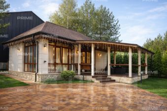 1-й этаж: Входная группа, просторная гостиная разделенная на зону отдыха и игровую для детей, кабинет, столовая объединенная с кухней, терраса с выходом на участок, 2 санузла, гараж на 1 авто со входом в дом.