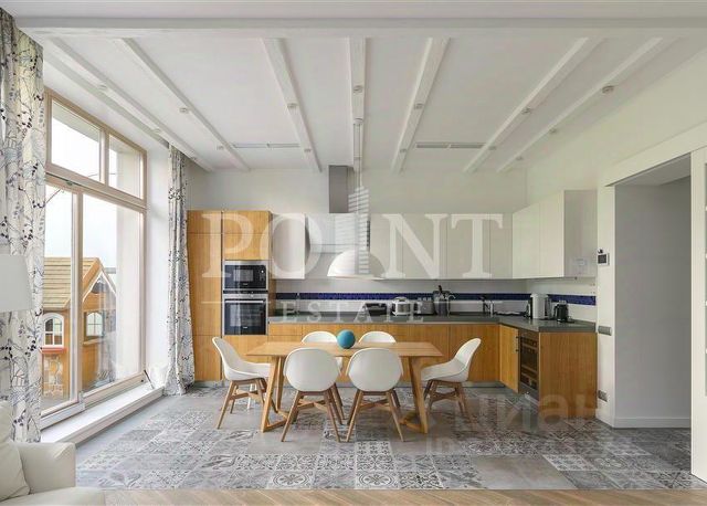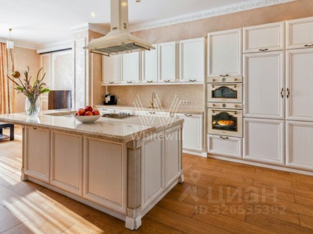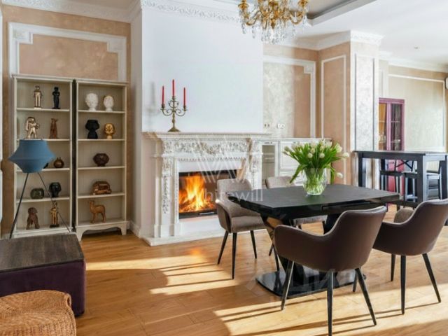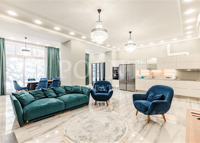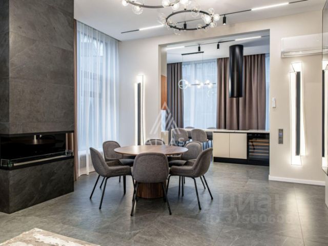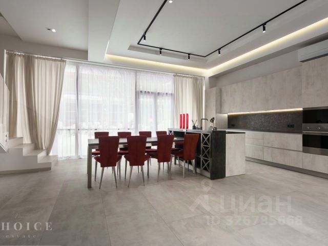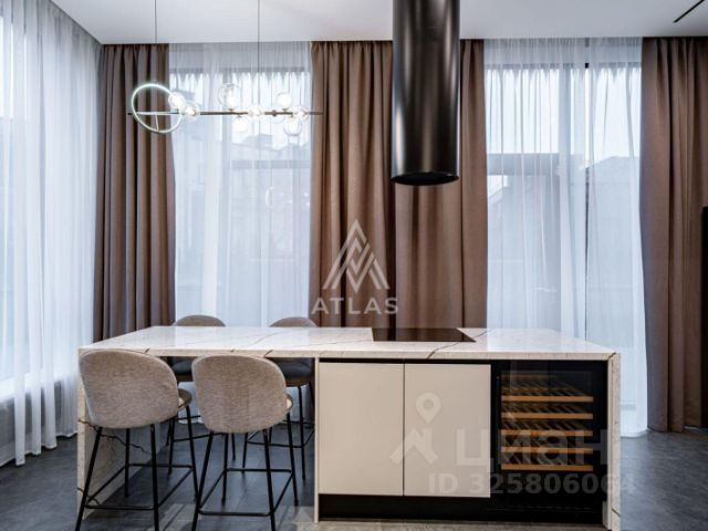 Парк Авеню. Загородный таунхаус площадью 265 м² расположен на полевом участке 3 сотки, на тихой улице в самом сердце посёлка. Современный фасад гармонично сочетает фактуры дерева и благородного травертина. Панорамные окна открывают живописные виды и наполняют внутренние пространства солнечными лучами. Интерьеры, выполненные в неоклассическом стиле, выдержаны в светлых тонах, украшены изящными молдингами и люстрами, а также укомплектованы комфортной мебелью. Кондиционирование и система "тёплый пол" поддерживают идеальный микроклимат в течение всего года. Центром притяжения в доме стала гостиная-столовая с камином, объединённая с кухней, оснащённой удобным островом. Кроме того, планировка включает четыре уютные спальни, приватный кабинет и вместительные гардеробные. На террасах и балконах будет приятно проводить время, встречая рассвет или провожая закат с чашечкой кофе. Оставить машину можно во встроенном гараже. На участке засеян аккуратный газон, организована зона для барбекю с профессиональным мангалом, а по периметру высажены туи, создающие атмосферу уединения. Поэтажное описание • Первый уровень: холл, гостиная-кухня-столовая, санузел, кладовая, котельная, гараж. • Второй уровень: холл, спальня с гардеробной, двумя санузлами и террасой, спальня с гардеробной, санузлом и двумя балконами. • Третий уровень: холл, спальня с гардеробной, санузлом и балконом, спальня, кабинет с балконом, санузел. ID 14 278.