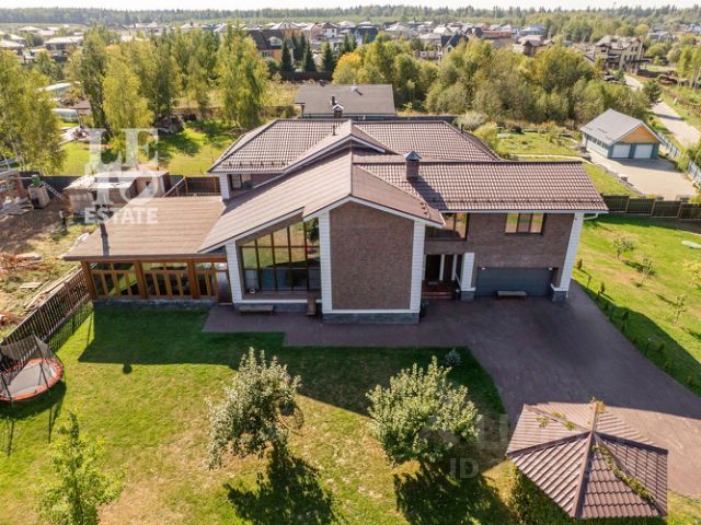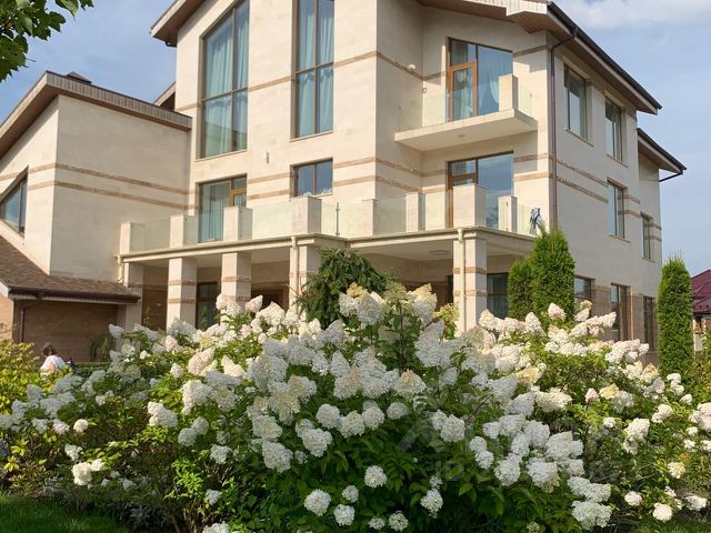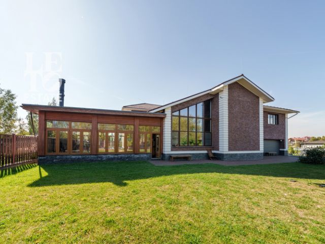 Основной дом: гостиная с кинотеатром, кухня, кабинет, спортзал, мастер-спальня с хамамом и балконом, 2 спальни, детская.