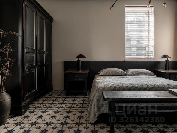 - Спальня с двуспальной кроватью и с встроенным 4-х дверным шкафом до потолка.