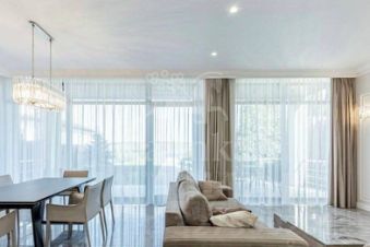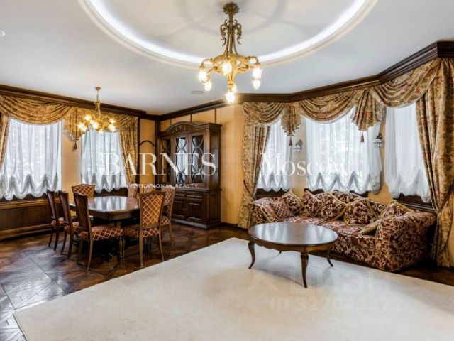 В отделке дома использованы самые лучшие и дорогие природные материалы, такие как шелк, редкие породы дерева, различные сорта мрамора и гранита. Мебель в дом покупали у итальянских фабрик Provasi и Francesco Molon. Техническое и инженерное наполнение дома тоже выполнено на самом высоком уровне центральная система кондиционирования, приточно-вытяжная вентиляция системы daikin, котельная Buderus с автоматической системой управления, бытовая техника от Gagenau и Miele.